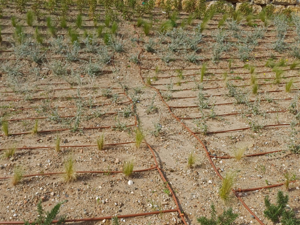 En la zona exterior perimetral, en contacto con el campo de golf, se ha llevado a cabo una actuación de reforestación orientada a la regeneración de esta franja y a su transición con el entorno.